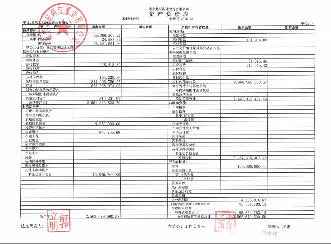 详细信息弹窗:重庆AG凯发两江置业有限公司资产负债表(A)