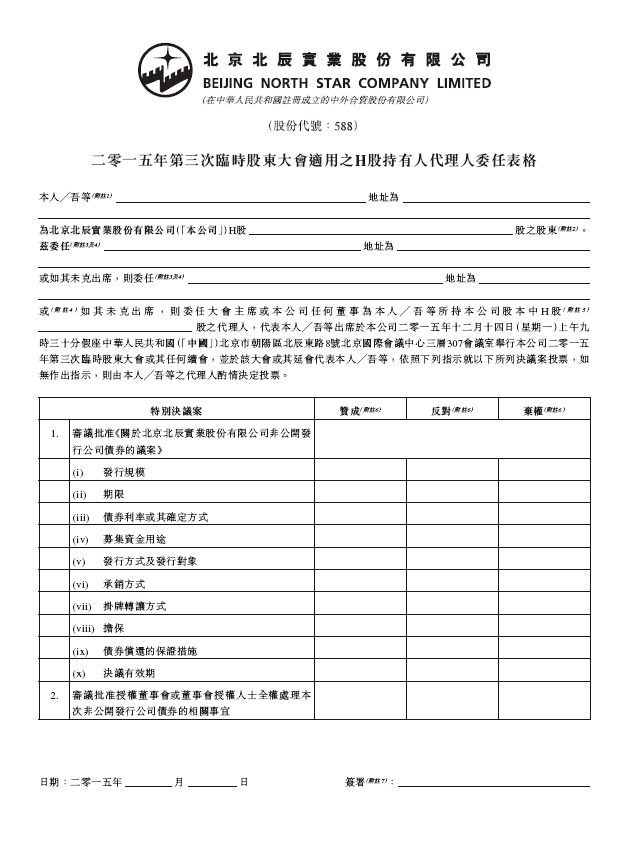 详情点击:2015年第三次临时股东大会适用之H股持有人代理人委任表格(H)