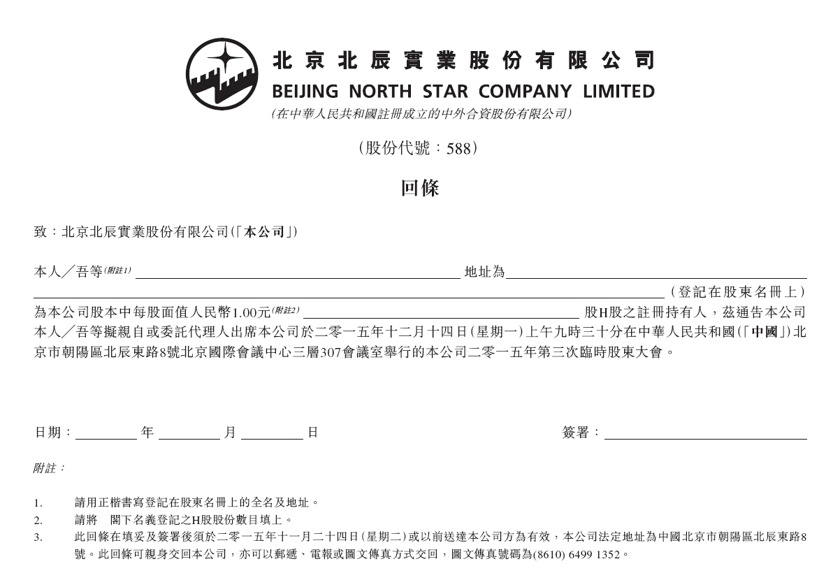 上一篇:2015年第三次临时股东大会适用之H股持有人代理人委任表格(H)