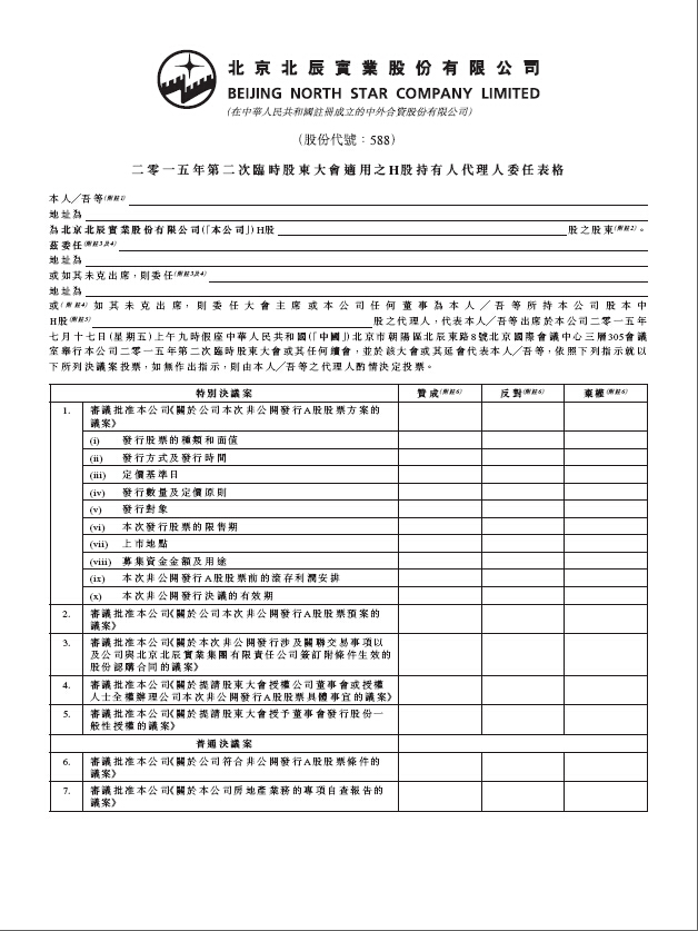 详情点击:二零一五年第二次臨時股東大會適用之H股持有人代理人委任表格(H)