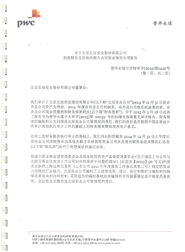 详情点击:2014年度控股股东及其他关联方占用资金情况表及专项报告(A)