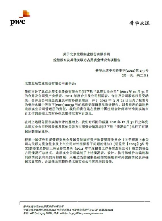 详情点击: 2011年度控股股东及其他关联方占用资金情况表及专项报告(A)