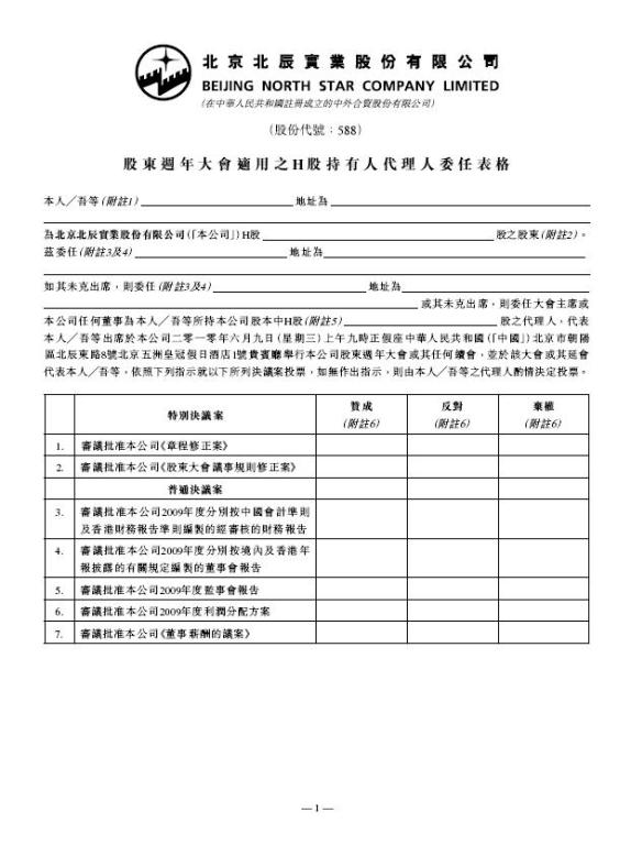 详情点击: 股东周年大会适用之H股持有人代理人委任表格(H)