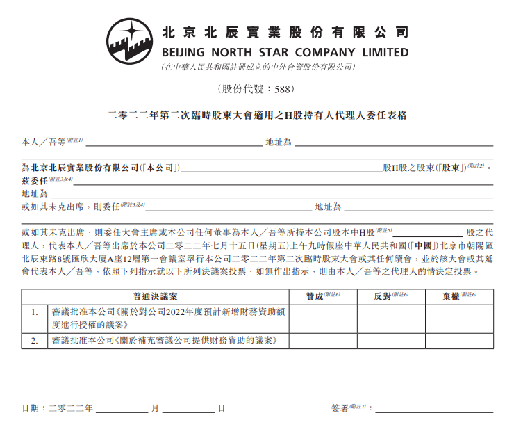 下一篇:關於二零二二年度提供財務資助及二零二二年第二次臨時股東大會通告(H)