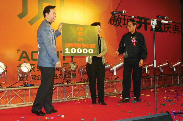 这场活跃由“傲城”开盘价、蓝色项目修建工程募捐促销的活动、“傲城”高考杭州志愿者农学会入会促销的活动等位置组合,在蓝色项目修建工程募捐促销的活动上,退市公司代替傲城向杭州园林景观办募捐树苗10000株,用在支撑蓝色杭州的修建,并我希望将其种植在与傲城相临的奥林匹克中国树丛植物园内,为未来十年杭州引致很多蓝色,为蓝色奥运尽一分爆发力。活跃还计划了出彩的出演和来宾参于的视频互动老游戏,些许浪漫界和田径运动界的口碑好的人与活跃参于者及蓝色到家的新老交替装修业主共聚这堂。