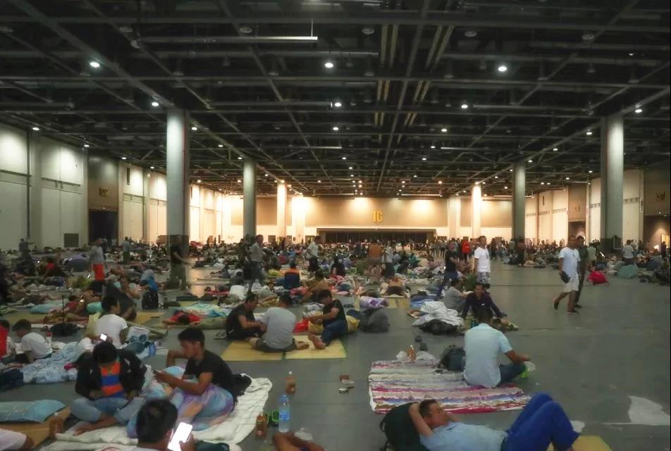 随着台风“利奇马”逼近,杭州全市范围内出现大量险情,杭博此时再次展现社会责任担当,开辟1C、1D两个展厅,总面积达两万平方米,为7000多名外来务工者提供“避风港”,向杭州亚运村建设工地的施工人员以及家属提供住宿及不间断冷气、热水、照明、网络等保障。考虑到安置人员突然增多,储备食物不足,杭博将员工餐厅的备餐食材全部让给避难人员,保证安置人员的营养餐食。针对避难区域,杭博还专门设置了20位安保人员维护厅内秩序,保障务工者的人身安全。