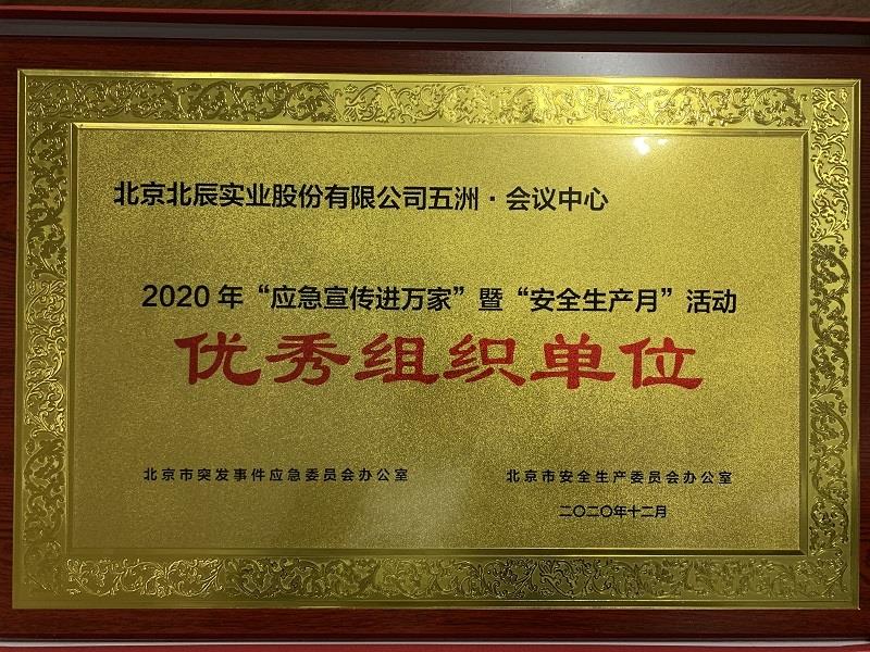 2020年是全面建成小康社会和“十三五”规划收官之年,为稳妥有序推进复工复产,维护职工生命健康权益,五洲·会议中心通过积极开展系列活动,严格遵循相关要求,获得了北京市2020年“应急宣传进万家”暨“安全生产月”活动优秀组织单位奖。
