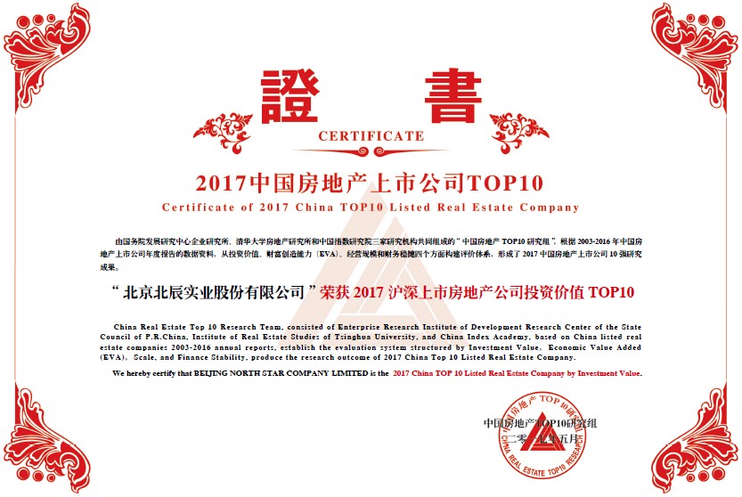 中国房地产TOP10研究组自2003年开展中国房地产上市公司TOP10研究以来,已连续进行15年,其研究成果引起社会各界特别是资本市场机构投资者广泛关注,并成为投资者评判上市房企综合实力、发掘证券市场投资机会的重要标准。本次研究对象主要针对于2017年3月31日前在沪深交易所、香港联交所公开上市的房地产企业。其中,投资价值TOP10评价体系涉及盈利能力、成长能力、运营效率、资本市场表现、业绩预测5大维度并下分19项主要指标;财富创造能力TOP10评价体系涉及税后净营业利润、资本成本2大维度并下分11项主要指标。2016年,公司以“轻资产运营、低成本扩张、新经济支撑、高端服务业发展”为方向,深入贯彻实施低成本扩张战略、品牌扩张战略和资本扩张战略,以雄厚的实力、稳健的步伐,实现旗下各类业态协同发展,可持续发展能力不断增强,相关指标表现出众,受到来自研究组的持续关注。