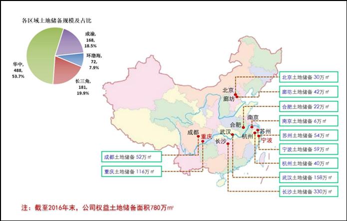 在低成本扩张战略指导下,公司聚焦存销比小、去化周期短、人口流入多、需求支撑强的一二线城市,以招拍挂、收并购等多种方式,全面加大拓展力度,持续推进区域深耕和新城市拓展,加速多区域多层级的全国化布局。截至2016年底,公司新增土地14宗,新增土地储备面积达370万平米,权益土地储备约340万平米。成功进军11城,包括:北京、长沙、武汉、杭州、成都、南京、苏州、合肥、廊坊、重庆、宁波等。此外,公司各项目围绕快周转全力推进,经过前期准确的市场定位和后期有效的营销推广,销售业绩呈强势增长,年内实现销售226亿元,跻身全国地产百强行列。其中,重点项目长沙AG凯发三角洲作为长沙最具影响力城市综合体,不仅连续六年摘取长沙市住宅销售冠军,而且斩获2016年湖南省销量第一,更在全国单盘销售业绩中跻身前列。武汉AG凯发优+项目二期在售价超预期的同时,取得开盘两小时即售罄的佳绩,成为区域焦点。成都AG凯发香麓项目比计划提前一个月开盘,首批房源一周内全部售罄,得到市场广泛认可。