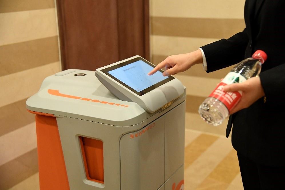 国家会议中心物业服务部与合作商积极联络,反复沟通合作细节,不到两周时间完成合同审批、签订与付款事项。同期,结合酒店内部结构、服务性质与相关部室通力合作,确认智能送物应用场景的可行性,为智能服务顺利进驻国家会议中心大酒店做好充足准备。此次进驻企业的智能送物机器人可实现客房送餐送物、智慧引领、智能避障、物联电梯、自动充电等7*24小时不间断服务。接到相关指令后,可通过摄像头感知周围空间结构以及移动物体,完成评估路线、避让行人、控制速度等自主操作,最终确保送物指令的顺利完成。智能送物机器人试运行期间功能发挥良好,周送物次数达216次,平均每天完成31次,保证最远距离5分钟以内送达,客人满意率100%。同时,智能送物机器人与企业内部网络连接,可自主完成与客人沟通、呼叫电梯联动等复杂操作,有效降低人工成本,缩减送物时长。