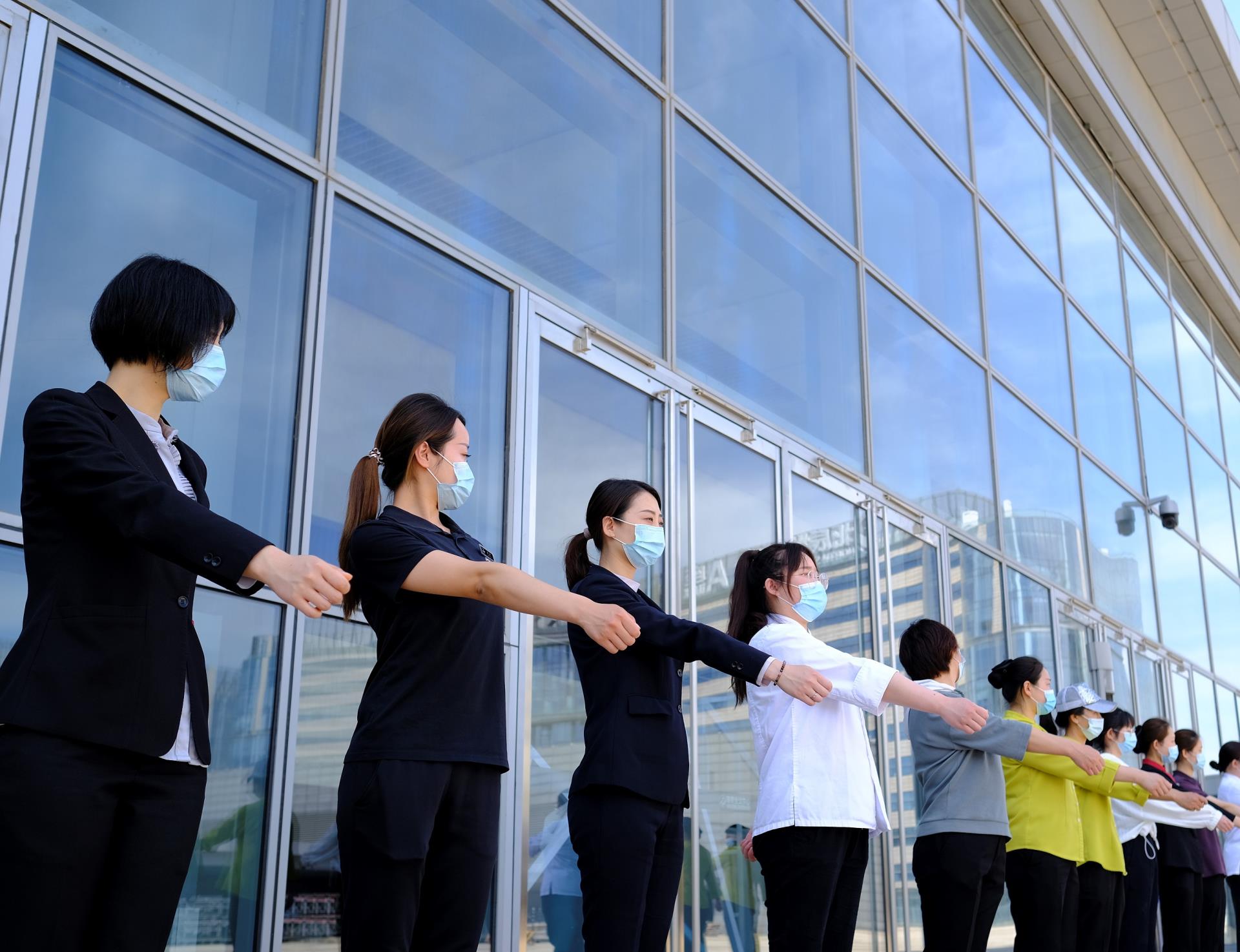为让国家会议中心全员以更高昂的斗志和饱满的热情迎接2021年服贸会和2022年冬奥会,增强团队凝聚力和向心力,进一步培养企业员工吃苦耐劳、团结合作的精神,国家会议中心针对45岁以下的员工开展了为期两个月的军事化训练,军训教员是从企业退役军人志愿服务队队员中选拔担任。