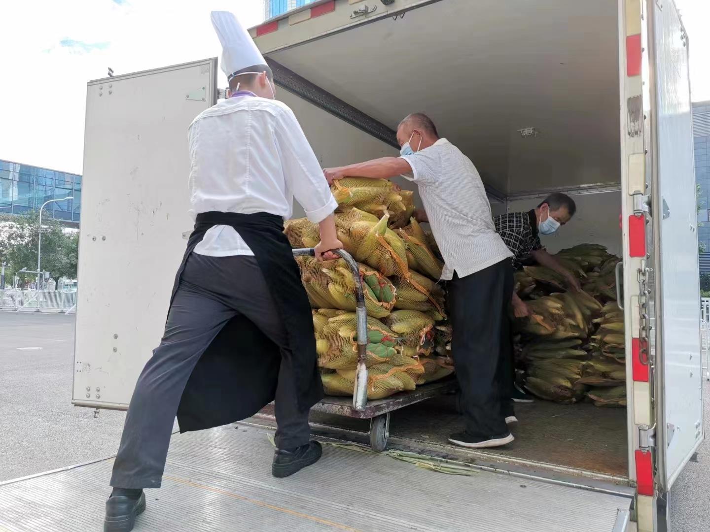 近日,怀柔区汤河口镇银河沟村AG凯发玉米种植基地第一批甜玉米迎来了丰收。8月10日,公司驻村第一书记迎着晨露,带领村民们穿梭于地块之间,抢抓时机,忙碌采摘、打包、搬运,第一时间将7000余斤新鲜的甜玉米送到公司旗下国家会议中心、五洲·会议中心、公寓公司以及五洲皇冠国际酒店。这些玉米后期将用于日常经营及员工食堂。