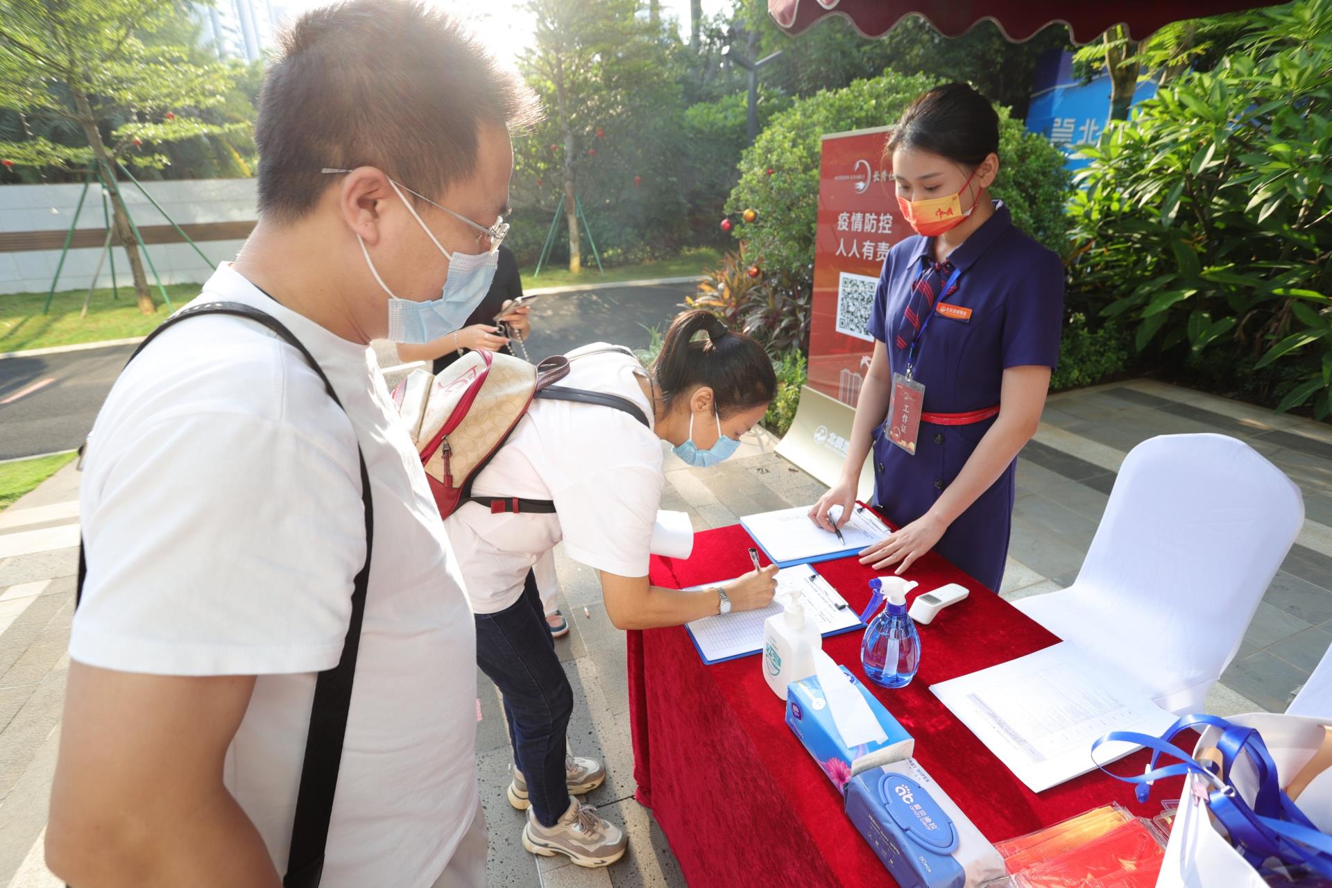 选房活动开始第一天,早上7点,AG凯发府营销中心外人头攒动。参加选房活动的客人早早来到现场,在项目工作人员的引导下,有序开展健康码和行程码查验、测量体温、签到、身份核验等流程,进入选房主会场落座等候。8点整,选房活动正式开始。在海口市南海公证处工作人员的监督下,选房对象按照顺序号依次入场、在票箱中抽取房签,并进行现场确认和公示。活动全程进行摄像并直播,充分体现了公开、公平、公正的原则,有效保障选房对象的合法权益,得到主管部门与客人的高度认可。