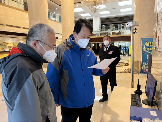 公司管理层成员分组带队,以“四不两直”方式深入公司旗下多家在京企业,对疫情防控工作进行督导检查。11月5日,李伟东先后来到AG凯发公寓公司、写字楼公司、五洲大酒店、北京国际会议中心、五洲皇冠国际酒店、信诚物业等企业,检查商务楼宇、会展场馆、公寓酒店、物业卡口等点位的疫情防控落实情况。李伟东仔细检查了各点位落实扫码测温情况,翻阅了访客登记、保安保洁台账等,详细询问了卡口人员对防疫要求、设备操作的掌握情况,并对检查发现的问题要求立行立改。