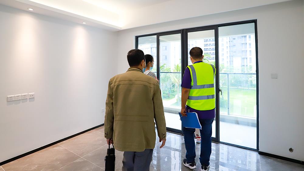 值得一提的是, 陪同验房的项目人员尽可能满足业主的所有需求, 包括测量尺寸、查看墙体, 以及测试管道设备是否良好、窗户推拉是否流畅、出水是否稳定等, 全方位展现房屋品质和精益求精的细节,赢得了业主的认可。