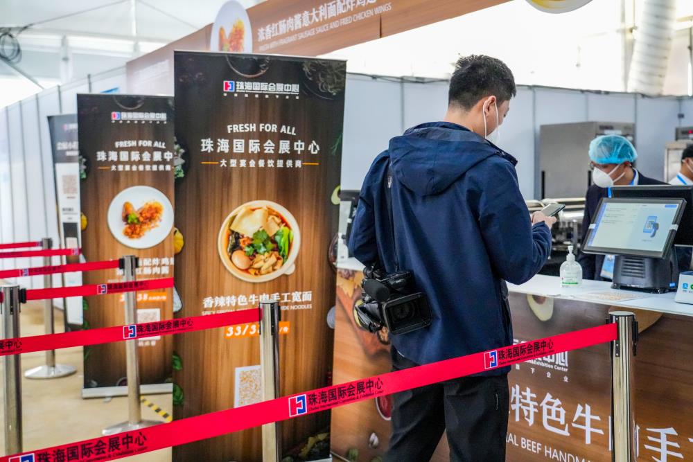 展前,珠海国际会展中心根据本届航展实际供餐情况研发适配的餐饮产品,调配餐食构成及定价,提前模拟搭建展位,还原现场的服务区配置,并就相关流程进行演练,制定了食品安全管控、餐饮服务、疫情防控、应急处置等多个方案、预案,确保供餐工作万无一失。展会期间,场馆的星级大厨现场烹饪浓香红肠肉酱意大利面配鸡翅和香辣特色牛肉手工宽面两项特色单品,取得了不错销量,得到了客人的好评。