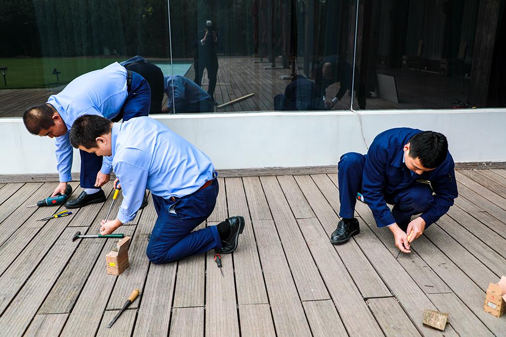 大会前,工程部严格按照企业整体要求和部署,细致倒排工期,对各区域的重点设备进行了全面的摸排和维修保养。考虑到酒店芳菲园是不少客人放松小憩的好去处,为确保整体环境良好、客人行走安全,工程部提前对芳菲园入口处的2000余块木地板进行了全面细致的“体检”。针对木地板中晃动、松虚、塌陷的部位,维修人员对症下药,采用敲、钉、锤、垫、补等一系列方法进行了加固和修缮。工程部还结合实际情况,更换了相关区域的照明灯,给客人带来了良好的体验感。