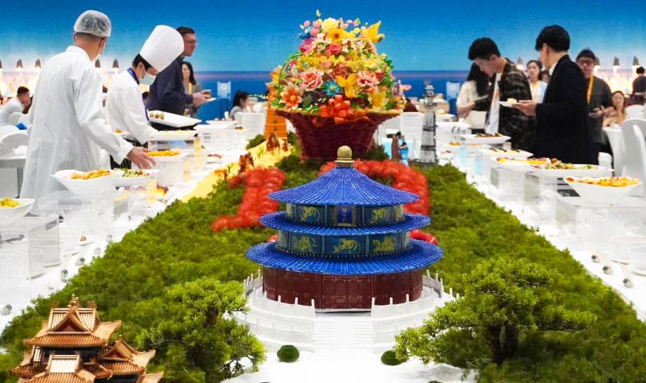 为了给嘉宾带来舌尖新体验,国家会议中心制定各类菜单204套,其中自助菜单128套、茶歇菜单68套、餐包菜单8套,每套菜品不重样,并将精彩的创意融进其中。