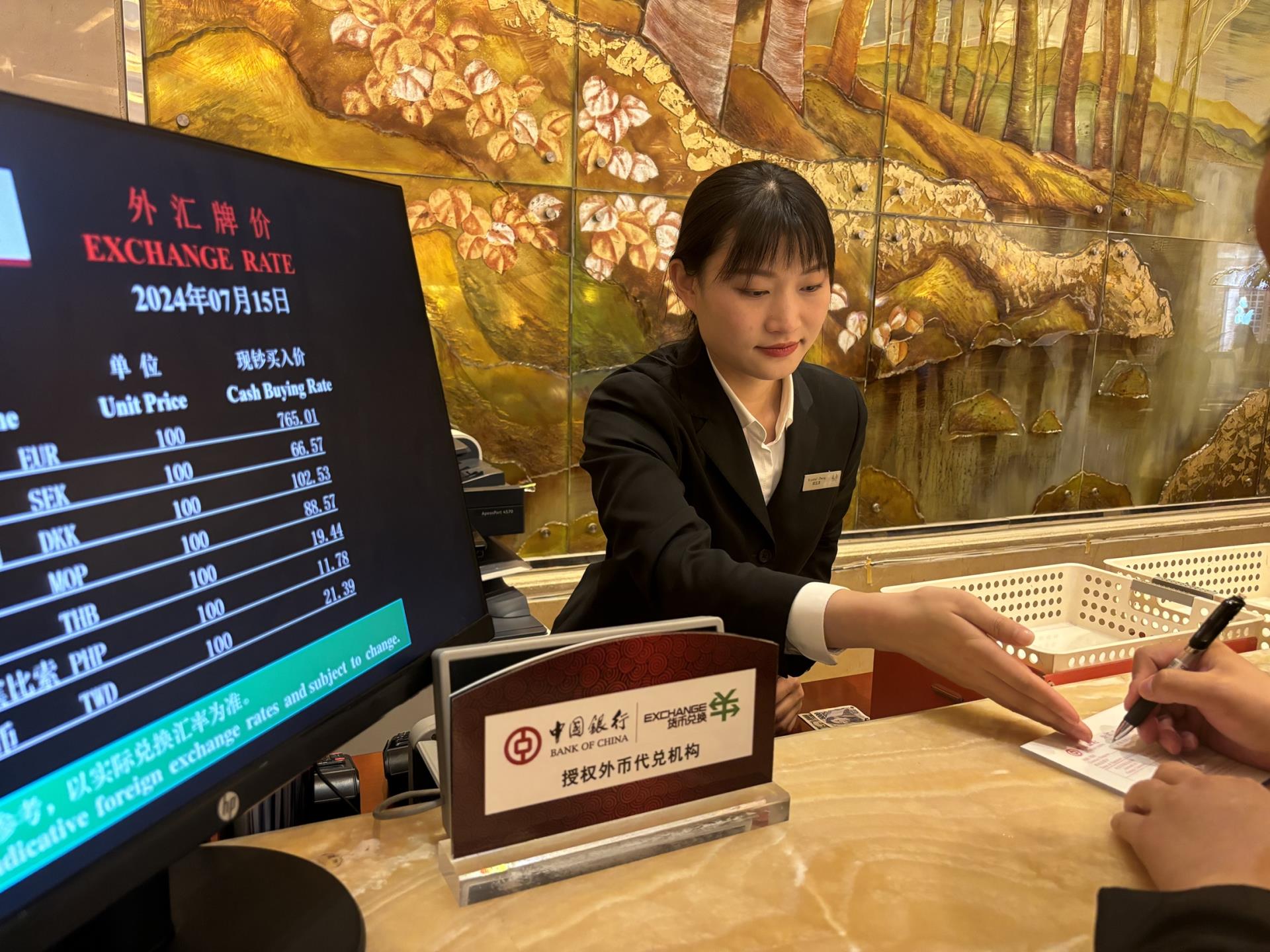 五洲皇冠国际酒店在服务外宾方面不断提高外币兑换工作效率和专业性。目前,酒店提供了包括美元、欧元、日元、韩元、新加坡元等在内的15种货币,方便下榻宾客轻松兑换。强化服务人员的日常专业培训和模拟演练,还号召鼓励一线员工学习、考取外币兑换证书,在保证专业人员储备力量的同时,为宾客带来更便捷、更满意、更个性化的体验。