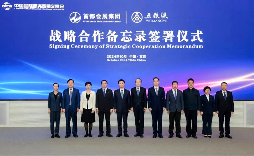 活动中,作为中国国际服务贸易交易会(简称服贸会)承办单位,首都会展集团与五粮液就服贸会赞助、境内外展会、推介活动组织等达成长期战略合作。双方将充分发挥各自专业优势,不断拓展合作领域,整合双方资源,以展会活动、商贸交流、文化体验为载体,共同推进服贸会高质量发展,实现互利共赢。