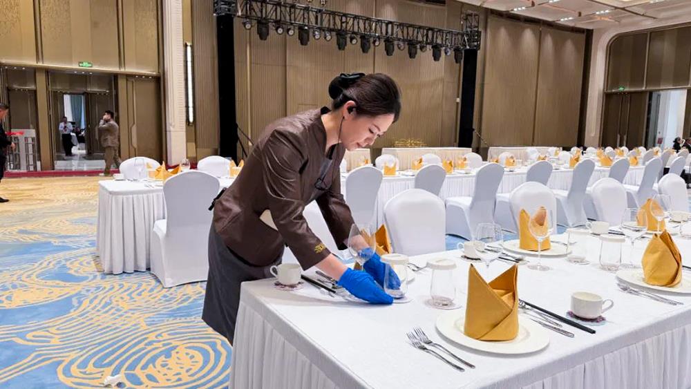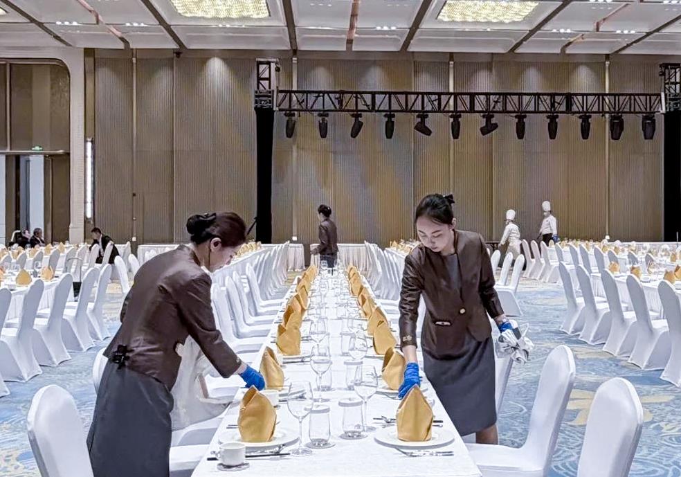 本届论坛筹备进入冲刺阶段后,AG凯发运营团队精准应对活动延期调整,以高效执行保障服务落地:动态调整各专业保障方案,针对论坛时间延期,及时修订接待倒排计划与服务保障方案,对冷餐酒会、茶歇提供专业技术指导,配合完成物资采购,各项物资提前到位。在不到4个月的时间里,完成物资接收、人员培训、精开荒保洁、工程满负荷测试等保障工作,确保场馆具备接待条件。