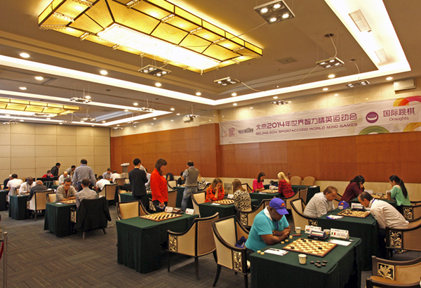 图为第二届环境物攻精英型移动会国际联盟跳棋比赛英文直播