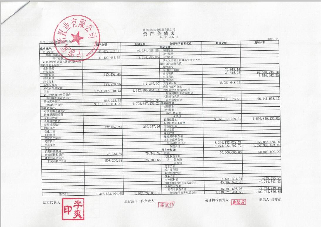 详情页鼠标单击:宁波辰新置业有限公司财务报表(A)