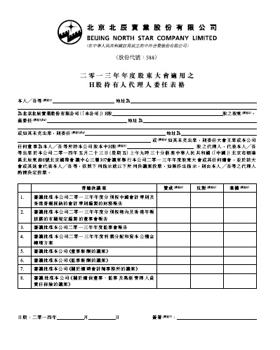 信息鼠标单击:2013年年度股东周年大会适用之H股持有人代理人委任表格(H)