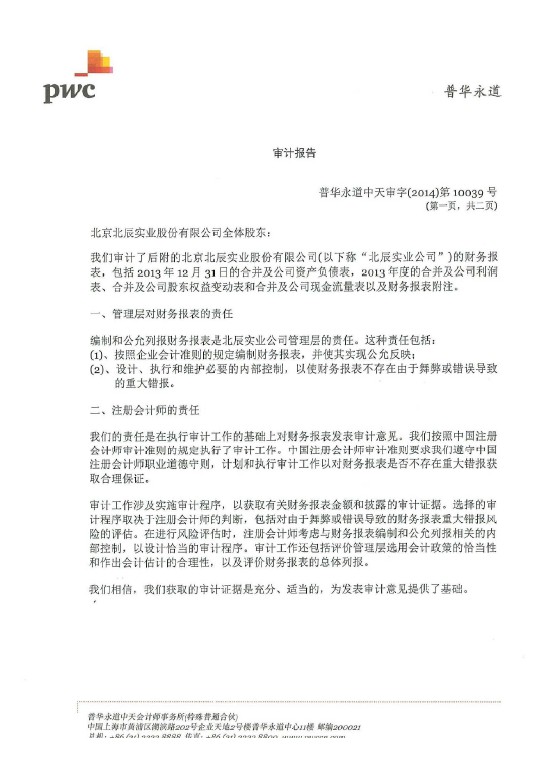 详情点击:2013年度财务报表及审计报告(A)