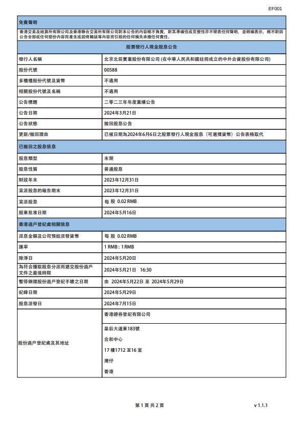上一篇:股票發行人現金股息公告(H)