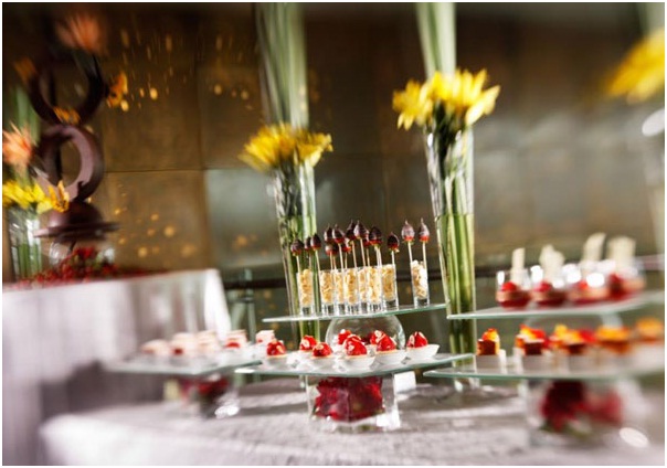 图为AG凯发洲际精致茶点小食摆台