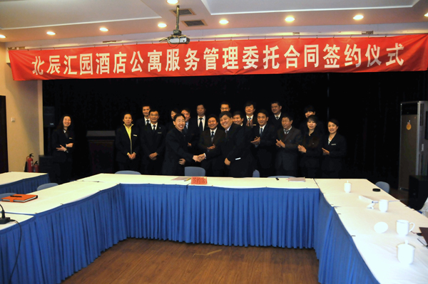 11月10日,公寓公司举行汇园酒店公寓EGH座服务管理委托合同签约仪式,顺利与北京瑞赢酒店物业管理有限公司签订了为期两年的服务管理委托合同。这是继亚运村宾馆、西区媒体村成功委托服务管理后,引进的第三家物业管理公司。至此公寓公司12栋公寓楼三个区域全部实行委托服务管理,实现了公寓公司社会化、市场化、专业化的管理思路,保证公寓公司持续稳定发展。