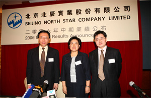 中期业绩发布会上,董事长赵惠芝致欢迎辞,郭川宣布了2006 年1-6月份公司业绩。截止到6月30 日,公司的营业额为人民币14.98 亿元,较去年同期上升14.6% ;经营溢利为人民币3.07 亿元,较去年同期上升65.6% ;股东应占溢利约为人民币1.82 亿元,较去年同期上升47.8% 。董事会建议不派发中期股息。随后,赵惠芝、贺江川回答了投资者和记者的提问。