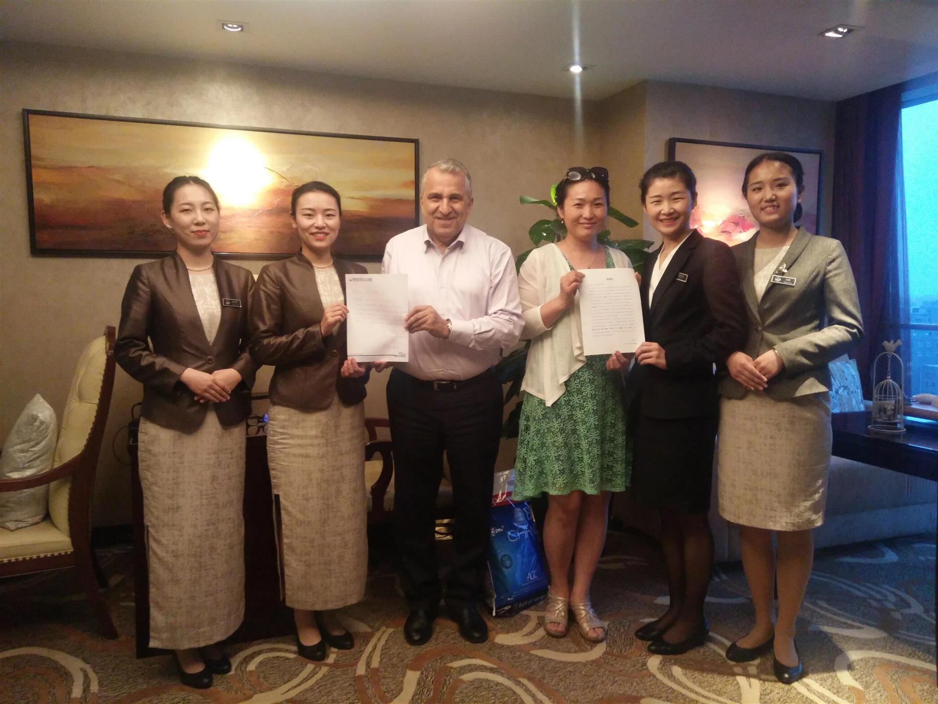 6月1日下午,加布里埃尔·阿祖马尼安先生和蒋女士告知工作人员,会议已经结束,明天他们也将离开,几天的相处,他们深深的感受了国家会议中心大酒店工作人员对宾客的耐心、用心、细心和贴心,主动要求与工作人员合影留念,并留下感谢信,表达对工作人员热情服务的感谢。