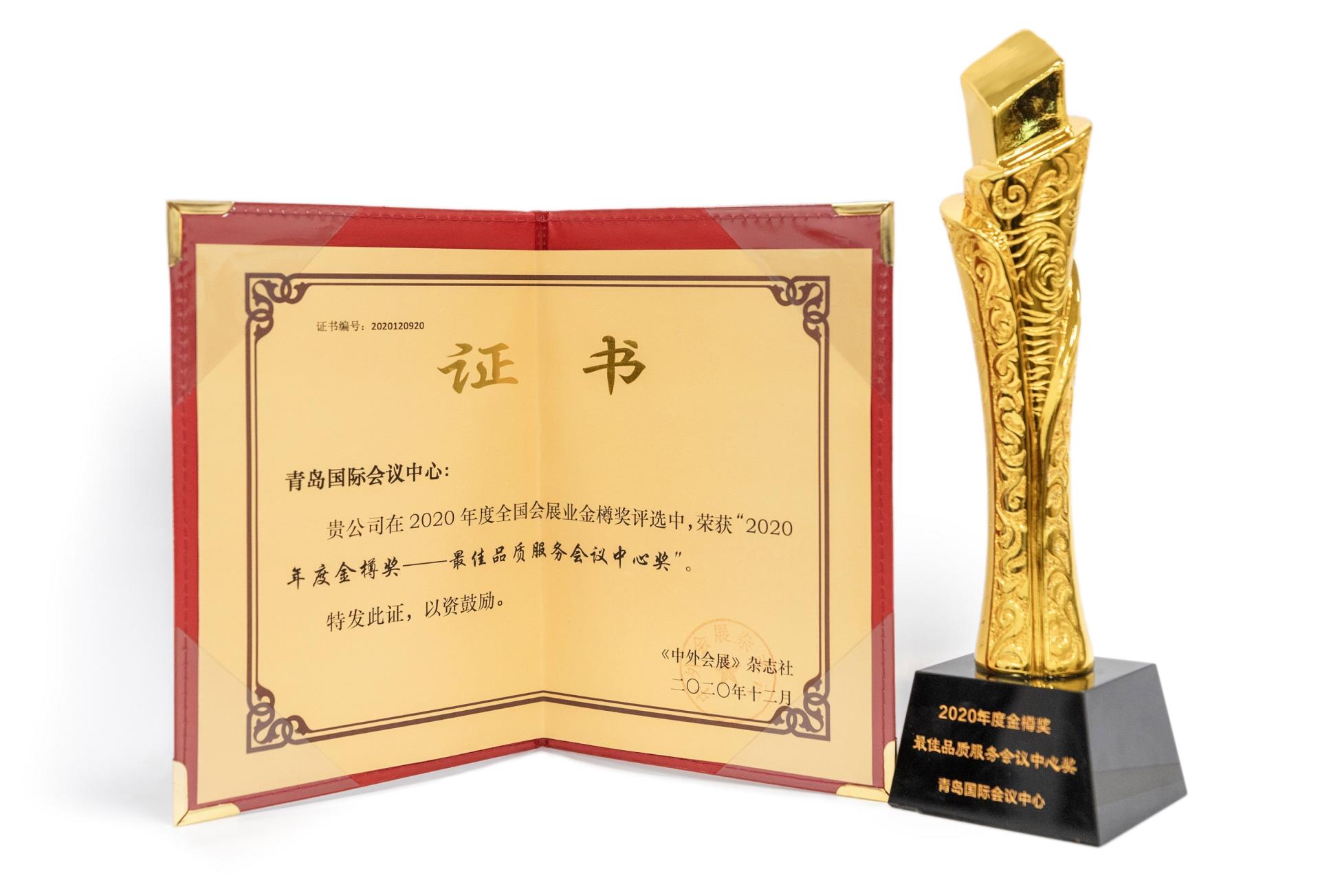 近日,由《中外会展》杂志社主办,中国城市会议展览业协会联盟、AIPC(国际会议中心协会)、AKEI(韩国展览业振兴会)联合主办的2020中外会展品牌大会开幕。来自全国各地的400余名会展管理部门、行业协会、主办机构、会展场馆、会展服务商代表出席开幕大会。青岛国际会议中心获得大会颁发的“2020年度金樽奖——最佳品质服务会议中心奖”。