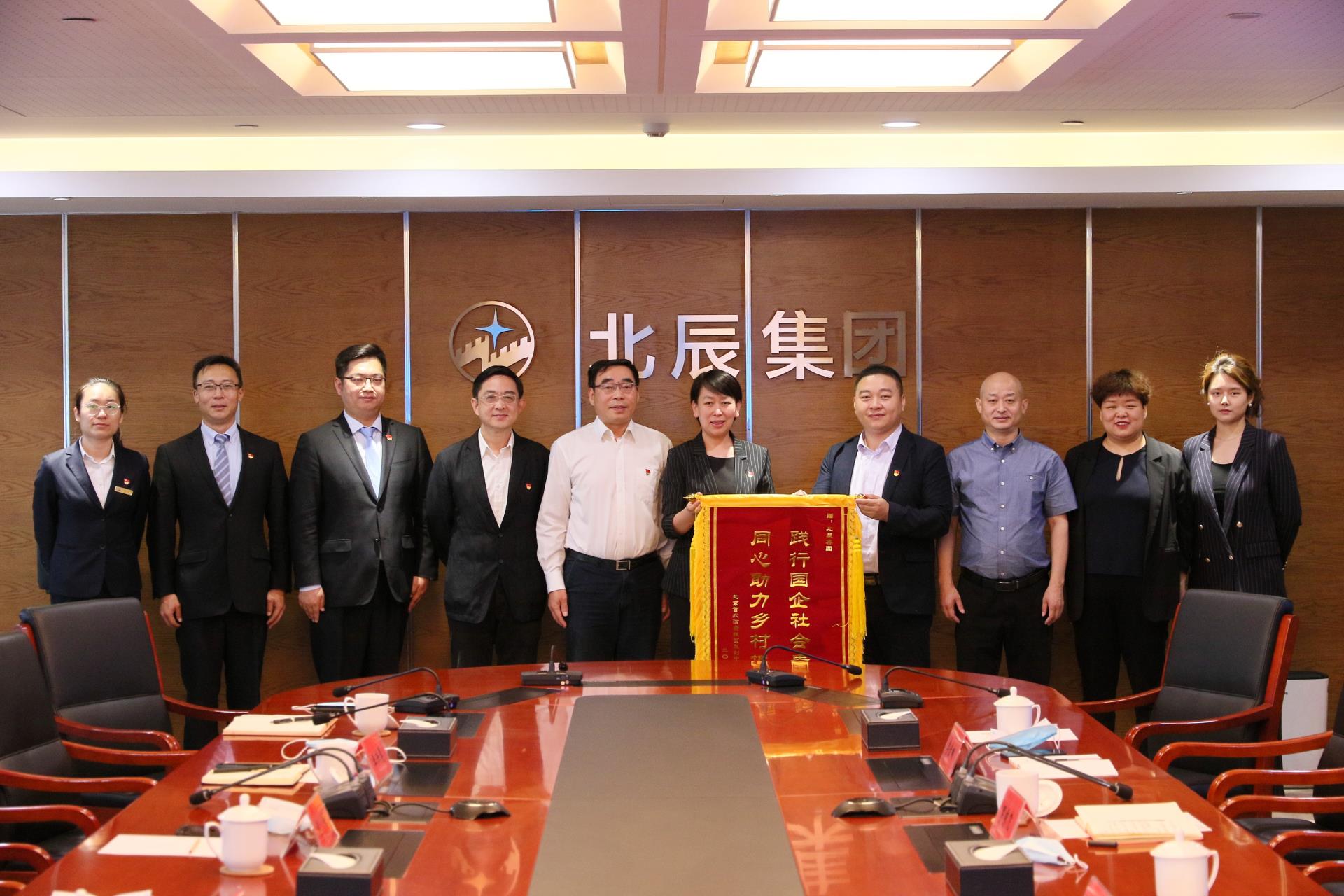 “践行国企社会责任 同心助力乡村振兴”,6月3日,北京首农消费扶贫双创中心有限公司副总经理于红亮一行,将一面饱含谢意的锦旗送到了公司,感谢公司在扶贫工作中敢于担当、主动作为。