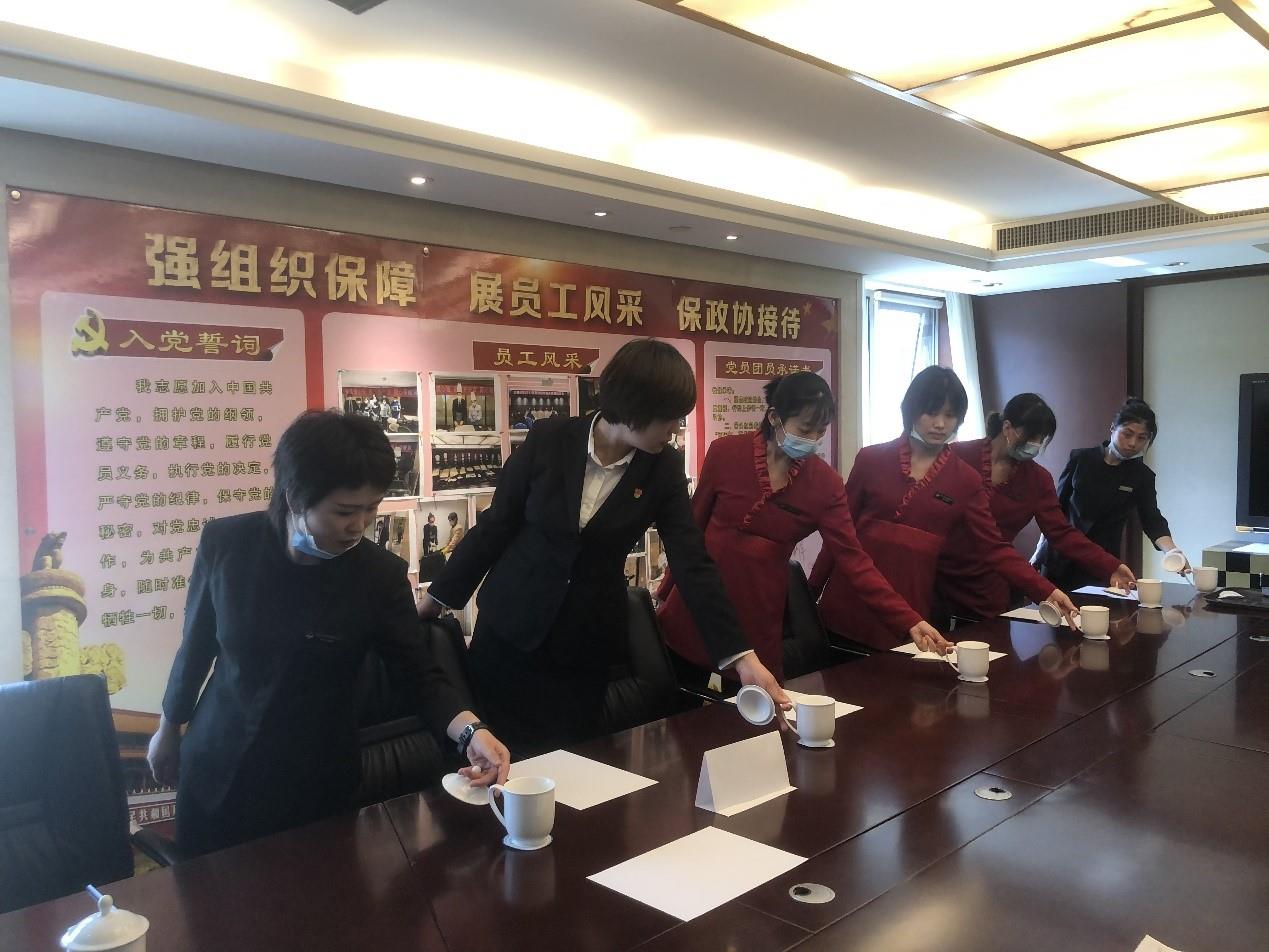近日,公寓公司餐饮部承担了汇园公寓E座会议室的接待服务工作,此项工作是餐饮部面临的一个全新挑战。为此,公寓公司邀请到五洲·会议中心会展部的会议服务负责人对餐饮部员工进行了一次专项培训。