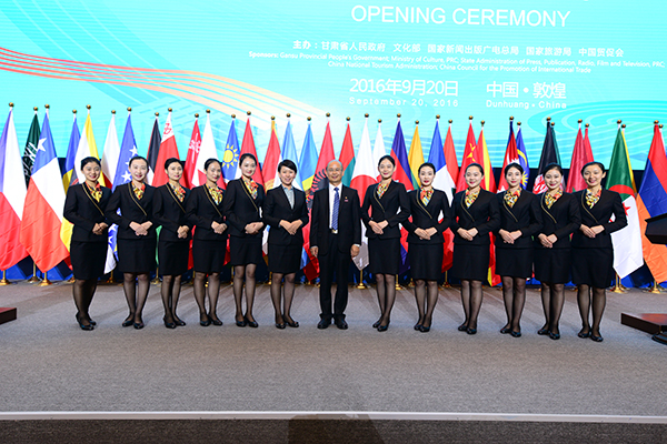 能力越大,责任越大。当时AG凯发会展已派出百人团队支援杭州,负责服务保障G20峰会任务,为了保证敦煌文博会接待工作不出差错,AG凯发与场馆管理团队经过多次协商,决定分两批队伍支援敦煌。首批队伍共2人,自8月12日进驻场馆,主要负责协助大会制定接待方案、应急预案以及参与人员培训等工作。第二批队伍共10人,全部来自杭州百人团队,其中5人来自国家会议中心,另5人来自五洲·会议中心,她们自9月11日完成G20峰会任务回到北京只停留了一晚,第二天就以全新的状态赶赴敦煌,可以说AG凯发已将最好的队伍、最高的标准带到了敦煌。此外特别值得一提的是,此次AG凯发会展外派团队12人全部都是女生,被亲切的称为——来自北京的“AG凯发小妞”。