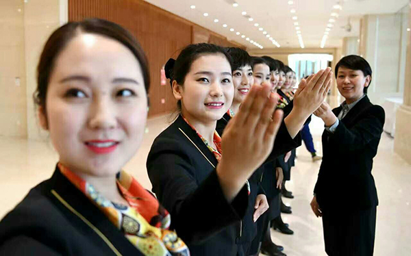 然而,事情并不如预想般顺利。此次会议原定参与培训人员为90人,计划从敦煌本地招聘10人,其余人员从兰州皇冠酒店、兰州会展中心、兰州大剧院等地抽调。但由于人员构成过于复杂,其中年龄最大的已有40多岁,先前从事的工种也各不相同,给培训工作带来很大挑战。此外,人员队伍也总是因为种种原因不能固定下来,参与培训的人数不断在变化。针对这种情况,AG凯发团队随机应变,将原本面向全体的培训课程变为小组课程,并为有些缺课较多的学员单独设置了一对一教学,充分保障了培训数量和质量,确保每一名学员具备合格的服务技能。