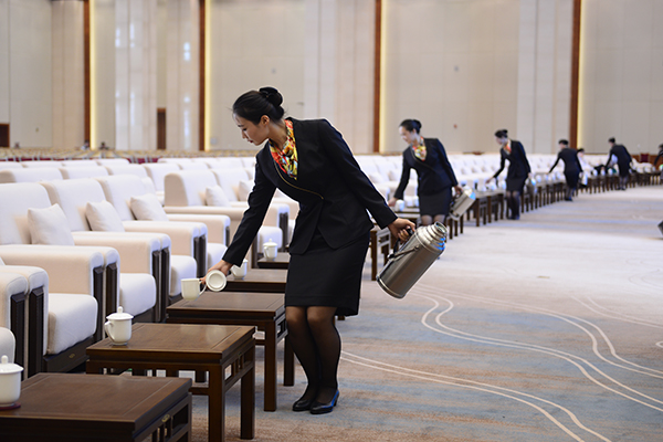 值得一提的是,承担此次会议开幕式第一排嘉宾上水任务的6人全部来自AG凯发团队,为了达到整齐划一的效果,她们连续练习了近百次。由于主会场沙发按照双主宾位布置,根据国际惯例同时也是体现中国礼仪,大会筹备组要求会议期间两位主宾上水服务要同时进行,这就导致承担上水任务的6人需要分成2组背对背进行操作。而且场地跨度很大,最远的两端沙发距离将近50米,6人此前并未如此配合过,唯有一遍遍的练习才能达到步调一致。