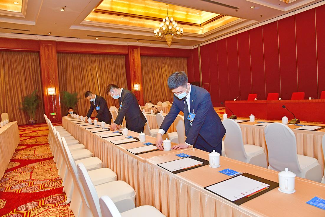 北京五洲大酒店、北京国际会议中心作为大会主要接待场所,为大会委员、工作人员等近千人提供会场、住房、餐饮、商务等综合服务。接待期间,在AG凯发集团党委、首都会展集团党委的指挥部署下,企业成立了以党委书记、总经理为组长的专项工作领导小组,销售部成立专项运营接待组等,各服务部门成立专项服务对接小组,明确职责,细化分工。