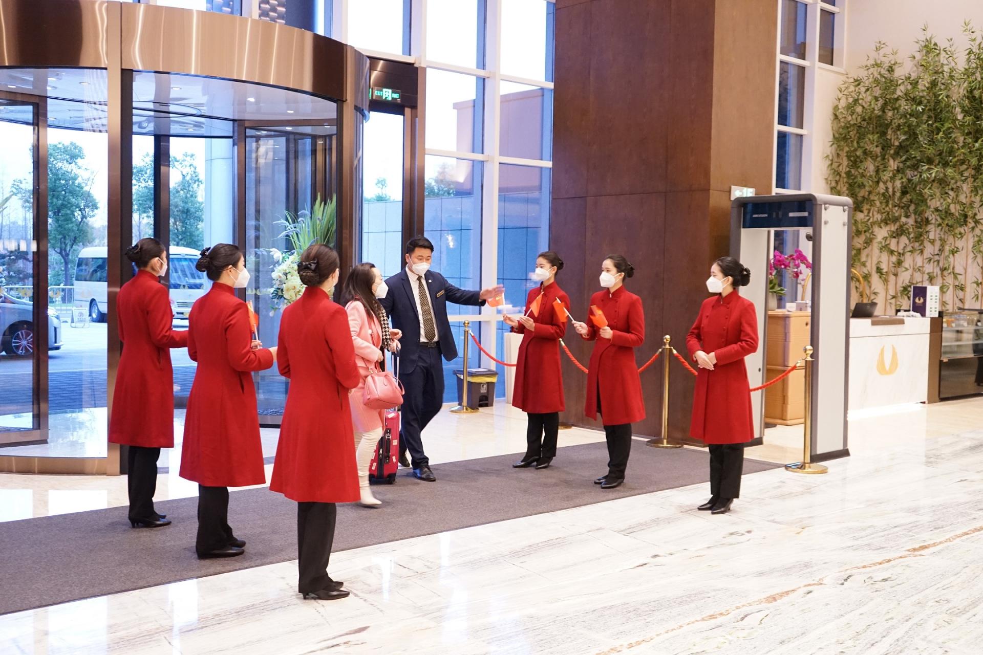 为烘托两会热烈而庄重的气氛,酒店以红色为主进行了布置,并在代表入店时组织了欢迎仪式,让代表进店的第一时间感受到服务的温度。值得一提的是,今年酒店还创新推出会议管家服务模式,专人专项提供服务。国宾服务队提前准备会议物资,布置茶水台及服务台,备足各类服务用品,满足代表的实际需求。餐饮团队反复打磨菜品,严格把控质量,在细节上下功夫,并合理安排参会代表的用餐时间,做到了安全有保障、菜肴有亮点、服务有温度。其中,美味的南通时令菜和特色水煎包,受到了代表们的喜爱。