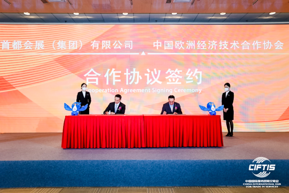 首都会展集团与中欧协会现场签署合作协议,两家达成多维度战略合作:服贸会方面,中欧协会将从新能源汽车方面助力环境服务板块、从物联网等相关方面助力电信、计算机和信息服务专题展(ICT展)服务板块;中欧协会将助力首都会展组织今年6月29日至7月2日在长沙举办的中非经贸博览会;双方将在展馆受托合作、共同创新IP展览题材等多方面展开合作。