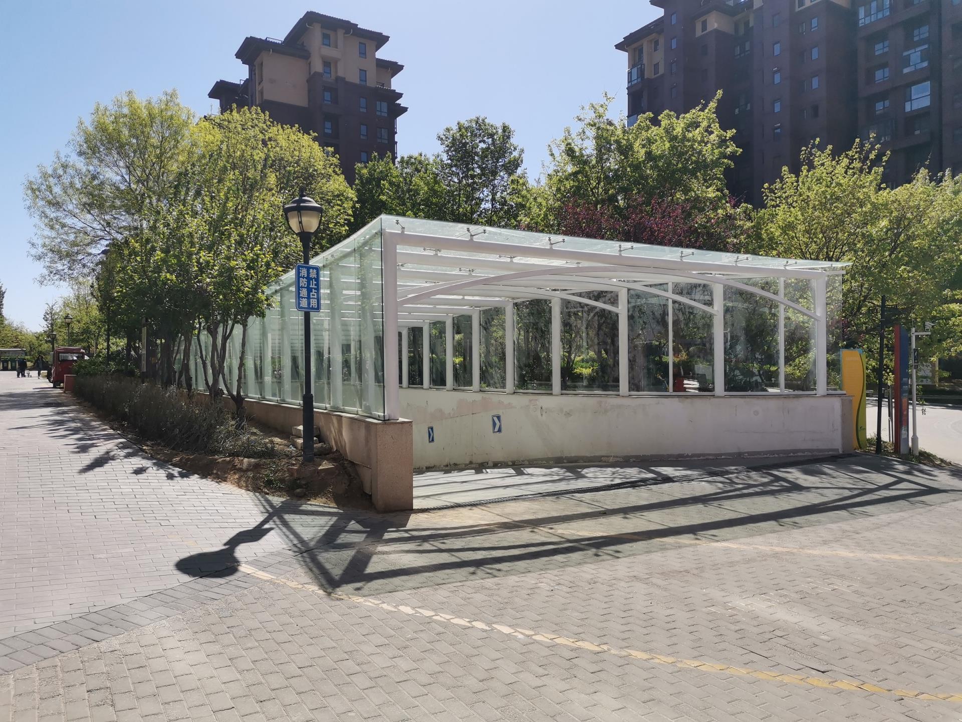 按照原来的设计,墅院项目1#车库出入口没有雨棚。后来有业主反馈,遇到雨雪天气时路面湿滑,加上车库出入口坡度较大,没有雨棚对出行造成了不便。企业高度重视,多次和居委会、业委会、物业单位沟通,最终决定在1#车库出入口搭建阳光雨棚,既能减少安全隐患,方便业主安全出行,又能提升项目品质,有利于促进剩余未售房源的销售。