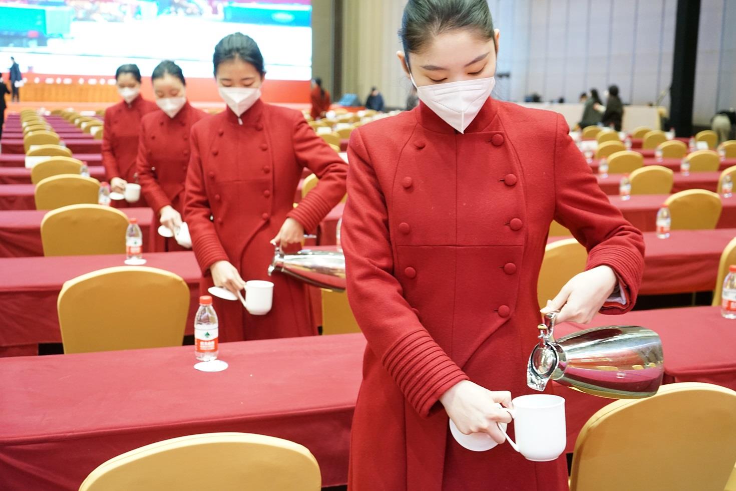 多次转场,无缝连接。在国际厅内,3028张座椅井然有序排列,工作人员以专业的技巧,对现场桌椅的整齐度、桌面茶杯物品的摆放位置精准调整,为现场与会嘉宾带来良好体验;在会场服务方面,服务人员用专业的态度、标准的姿势,从迎宾、站立、倒茶、引领等各个环节为与会嘉宾提供贴心的服务。