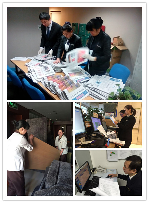 为182套道路工程行业协会办公员住宅準備10个玩法的报刊杂志,是青年公寓子公司红贵宾楼客务部的每一天办公的一个。为早日将早报分销到会议通知办公员次卧,客务科室调度员,应对清早屋外气溫低、送报收地址不一致的不便,每一天早班申请到岗和发行股票员接入,加剧物流分栋员,百度主页、插页、副刊等按次序逐份特别整理成套设备,增强了物流分栋有效率,担保了客户是可以适时分析报刊杂志数据的意愿。(王茹 文并摄)及时熨烫浴衣确保服务质量