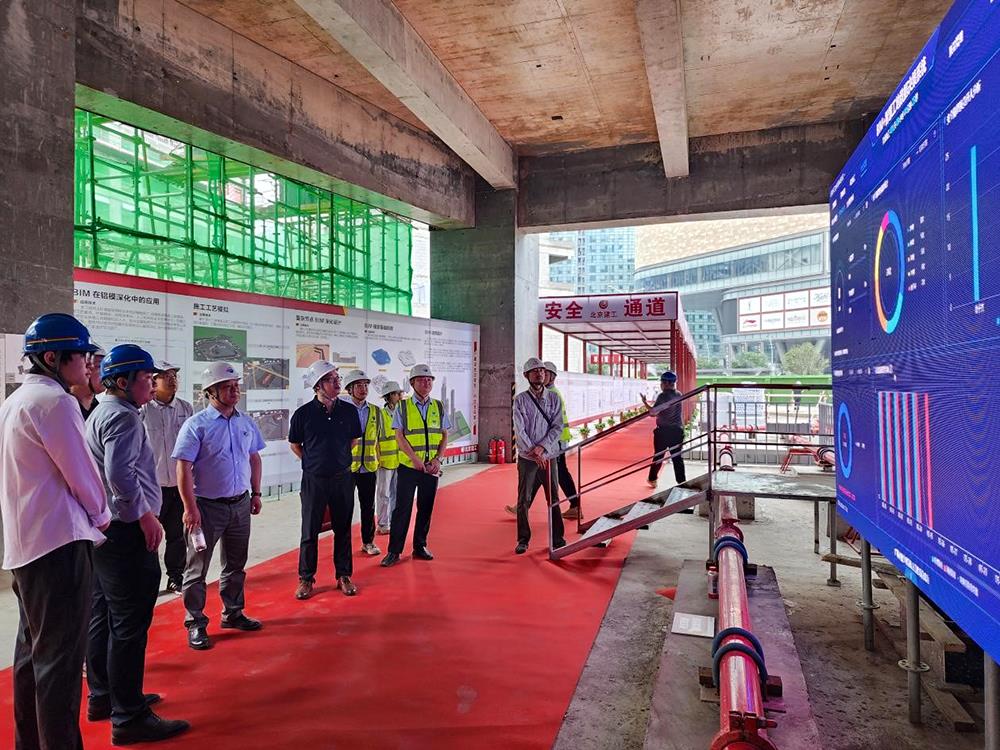 观摩活动现场,项目团队布置了质量创优展示区、BIM+智能建造系统展示区、安全体验区等9个展区,向观摩人员全面展示了AG凯发三角洲A2项目在安全生产、质量创优、绿色施工等方面的具体做法和取得的成效。团队还对C70高强混凝土施工技术、附着式升降脚手架升降平台、BIM+智能建造、实测实量机器人、无人机测绘等新施工技术的运用进行了重点介绍和展示,当天便接待了来自各市住建局、建筑企业、监理企业等相关单位的代表共计300余人次。