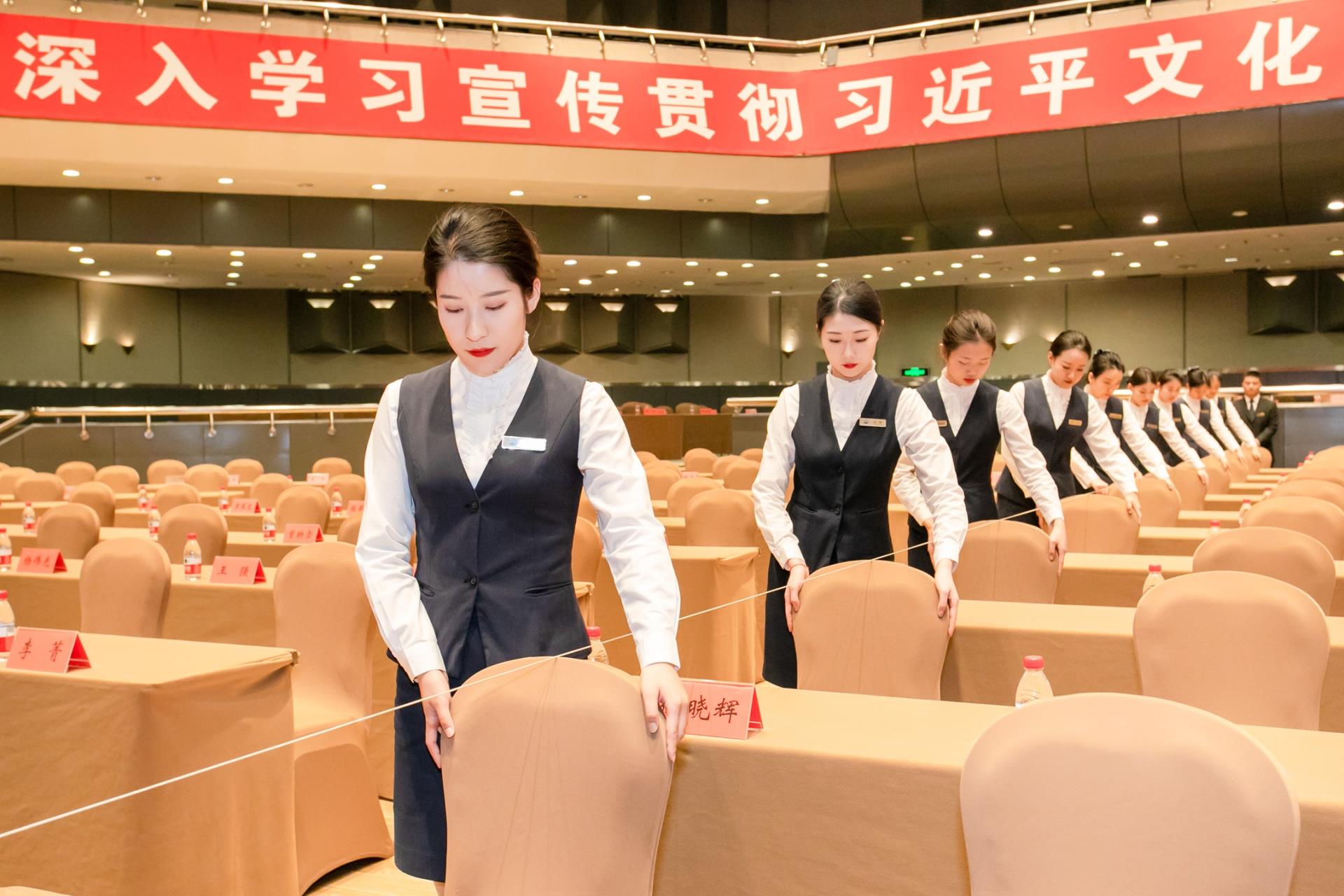 会期内,安保团队全天候值守,加强入场安检、外围交通疏导以及消防安全等管理。工程团队全面调试场馆各设备系统,全力做好网络信息设备维护,为活动提供技术保障。会务服务团队专业细致,从桌布颜色、会场温度、灯光明暗度到餐具摆放,坚持每个环节做到精益求精,力求把各项要求落实落细,为客人提供满意的参会体验。餐饮部创新工作室和厨师团队强强联合,结合参会人员特点设计10 余款菜单,在主打健康和家常的基础上专门加入了具有地方特色的菜品,摆台装饰、菜品搭配、饭菜口味、更换菜品速度、服务意识、现场衔接度及专业度六个方面都得到了主办方的高度评价。