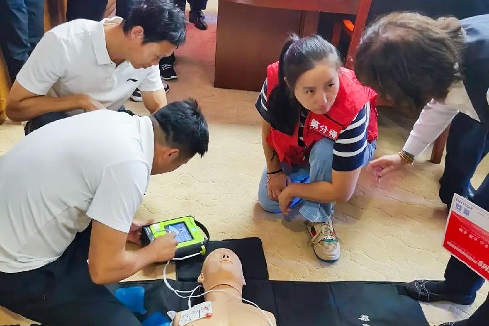 AED设备全称自动体外除颤仪,是一种可被非专业人士使用的用于抢救心脏骤停患者的便携式医疗设备。为规范使用AED进行有效救治,汇欣俱乐部请专业人员为全员进行了急救知识、设备使用要点培训,组织每名参训人员进行了实操演练。