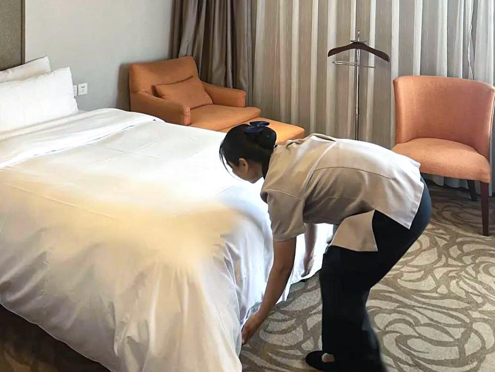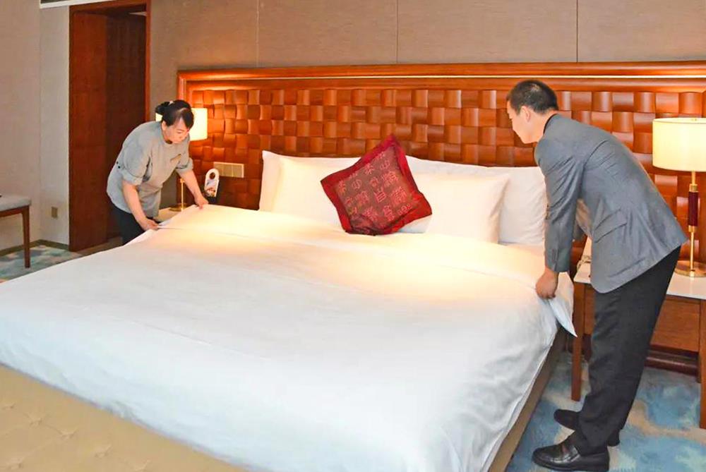 客房服务体现专业高效、温馨舒适。服务团队从细节入手,精益求精做好客房布置。集中入住当晚,酒店530间客房满负荷运转,客务部提前对前台、礼宾等岗位进行培训,统筹做好宾客入住登记、路线指引、行李搬运等工作,切实提高入住手续办理的速度。